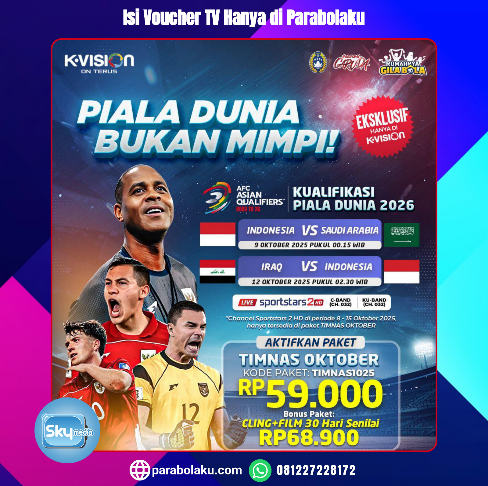 Hadirkan & Nikmati Channel Premium Dunia Sport & Hiburan beserta Channel Nasional Lengkap di KVision, segera Isi Vouchernya di Parabolaku !