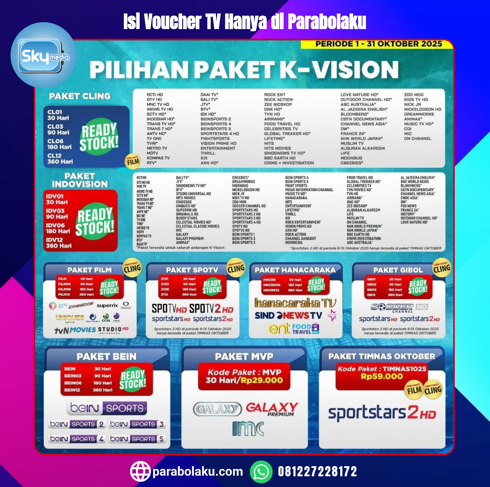 Dapatkan juga TV Voucher Favorit anda lainnya yang tersedia di Parabolaku