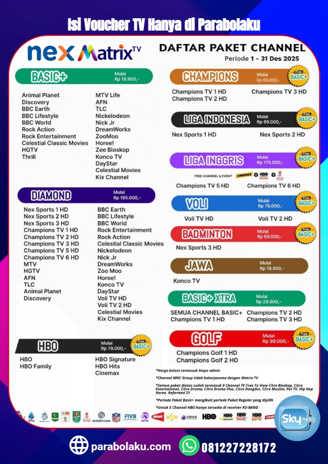 Dapatkan juga TV Voucher Favorit anda lainnya yang tersedia di Parabolaku
